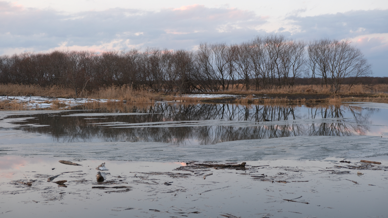 この前の日曜日も海岸へ行ってきました。十勝川河口の町、大津です。すでに空は暮れなずんでいます(15:45くらい)。冬の夕暮れは早い。